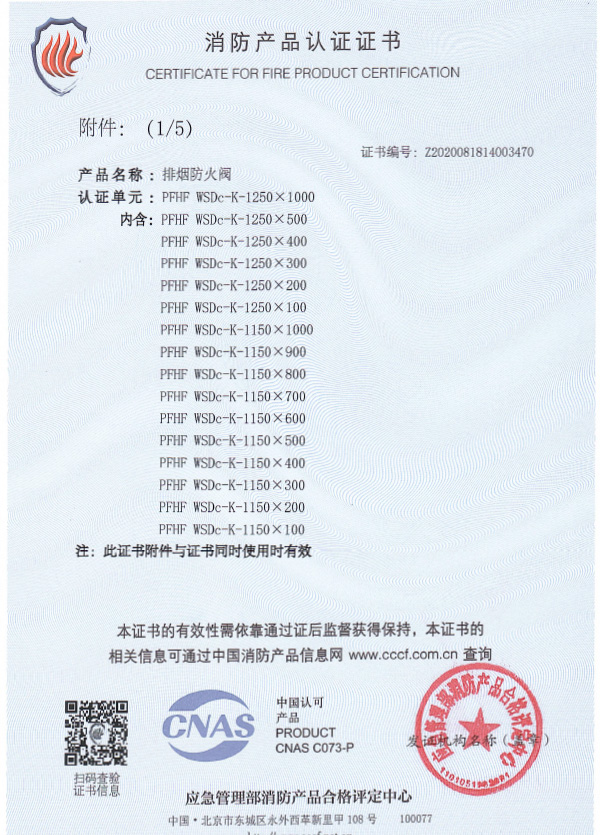 排煙防火閥認證證書1250X1000
