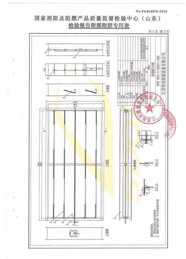 排煙防火閥認證證書2000X1000